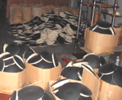 Tutto il materiale, i semilavorati, i prodotti finiti sono custoditi in contenitori, non a terra per tenerli ben in ordine.